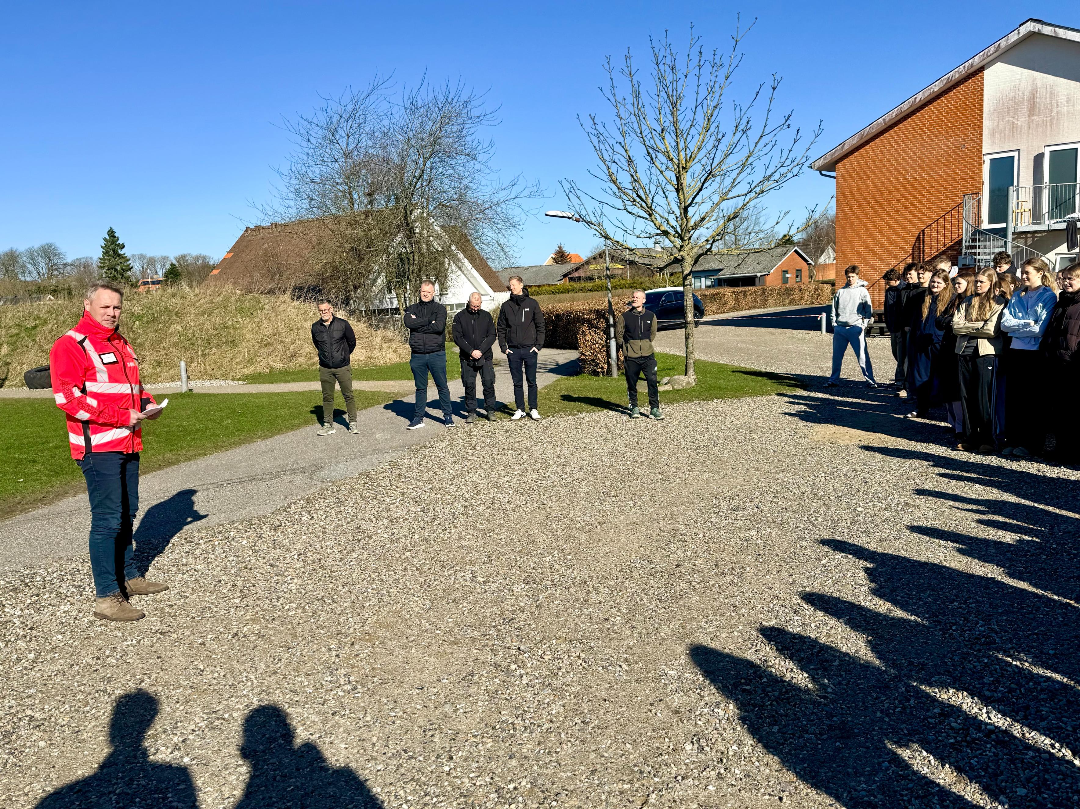 Første spadestik blev markeret med taler af forstander Søren Troelsen, deltagelse fra skolens ca. 150 elever og med bestyrelsesmedlem Torben Larsen samt en elev, der tog det første spadestik. Administrerende direktør for entreprenør TL Byg, Jesper Hoffmannn, holdt også tale – og dagen blev rundet af med pølser i kantinen.