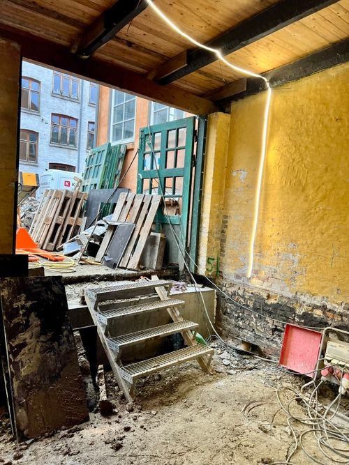 Entreprenører har nu opstartet en omfattende understøbning, sikring af bygningens fundament og støbning af et nyt terrændæk. De mange støbninger vil skabe et solidt grundlag til den videre renovering. Projektet udføres i samarbejde med ABC Rådgivende Ingeniører - https://abc.dk