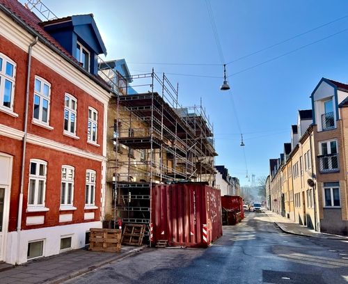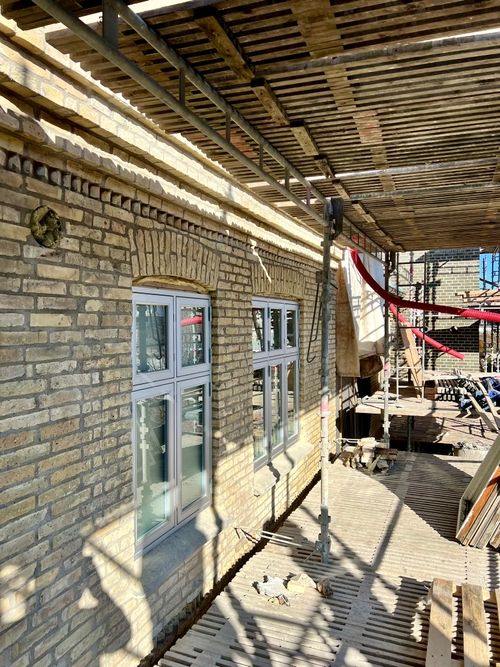 Vi er begejstrede over den fremgang, vi ser i vores projekt i Absalonsgade 16 og 18 i Aalborg! Opbygningen er i fuld sving, og der lægges stor vægt på detaljerne, herunder zinkarbejde på bl.a. kviste og ny mellembygning. Isætning af vinduer er ligeledes i gang, og der arbejdes omhyggeligt med eksisterende murværk for at sikre både holdbarhed og æstetik.