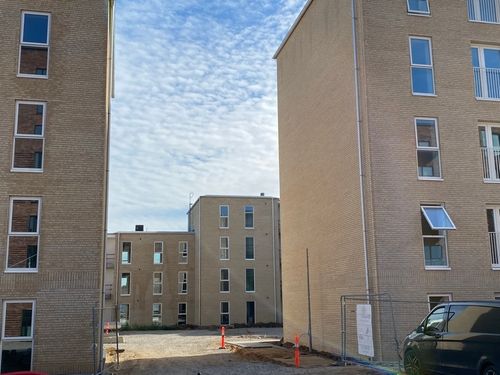Entreprenørerne er netop blevet færdige med alt indvendigt i boligerne, og går nu i gang med slutfasen. Vi ser frem til det endelige resultat til engang i november.
