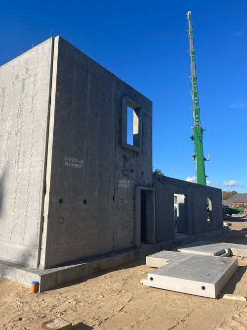 I juni gik byggeriet i gang på det nye plejehjem i Gandrup, og nu er de første elementer ved at blive rejst. Vi er utroligt stolte af at være en del af dette spændende projekt, som vi har arbejdet på, siden vi vandt konkurrencen.